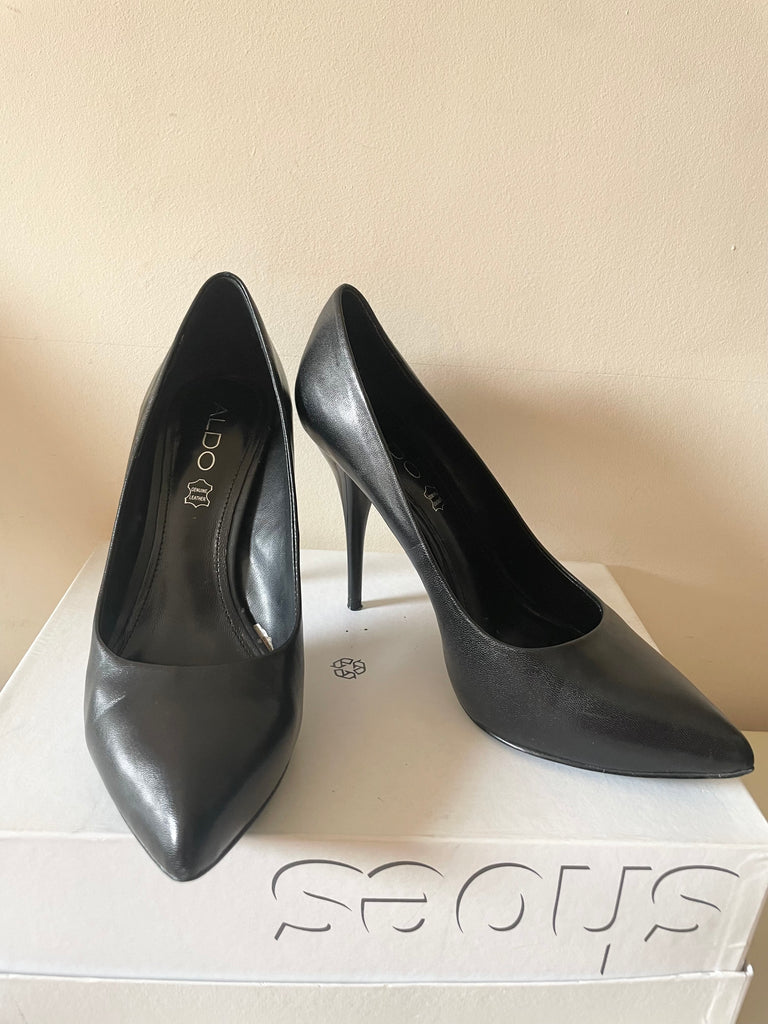 ALDO BLACK LEATHER HIGH STILETTO HEELS