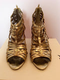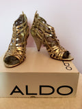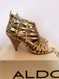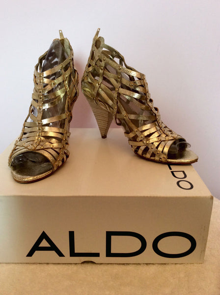 Aldo 'Surran' Gold Strappy Leather Peeptoe Heels Size 7/40