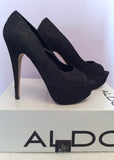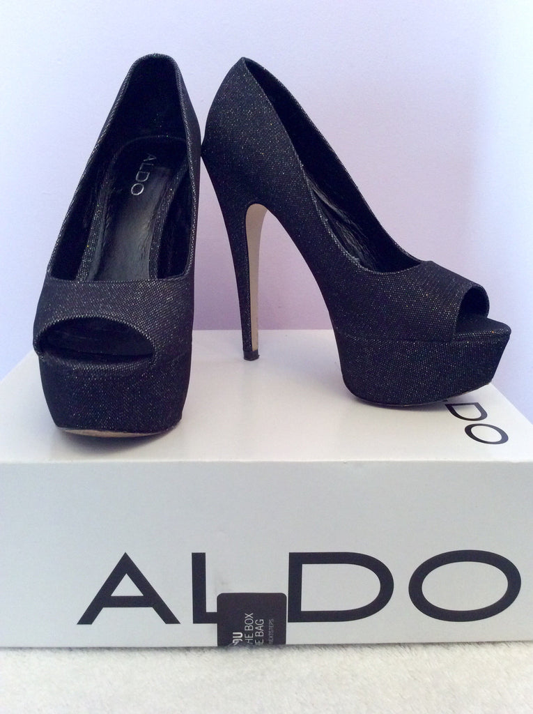 Aldo Vannice Black Sparkle Peeptoe Platform Sole Heels Size 5/38