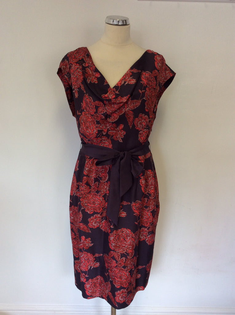 ALEX & CO DARK GREY & RED FLORAL PRINT SILK DRESS SIZE 16