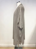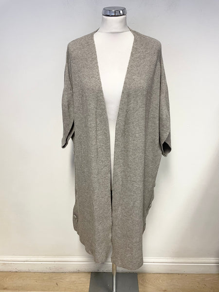 ALFA BEIGE RIB KNIT BATWING BUTTON TRIMMED LONG CARDIGAN ONE SIZE