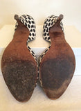 Alima Black & White Spot Canvas Peeptoe Heels Size 7/40