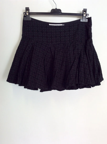 ALL SAINTS BLACK BROIDERY ANGLAISE FLIPPY FULL MICRO MINI SKIRT SIZE S