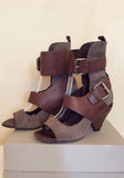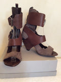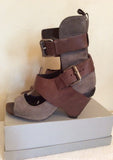 All Saints Brown Suede & Leather Peeptoe Eos Boots Size 5/38