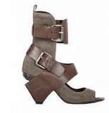 Suede And Leather Peeptoe Ankle Boot Featuring Harness Detail Leather Straps With Oversize Buckles