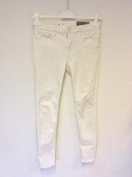 ALL SAINTS MAST FRAY OFF WHITE SKINNY LEG JEANS SIZE 29 W