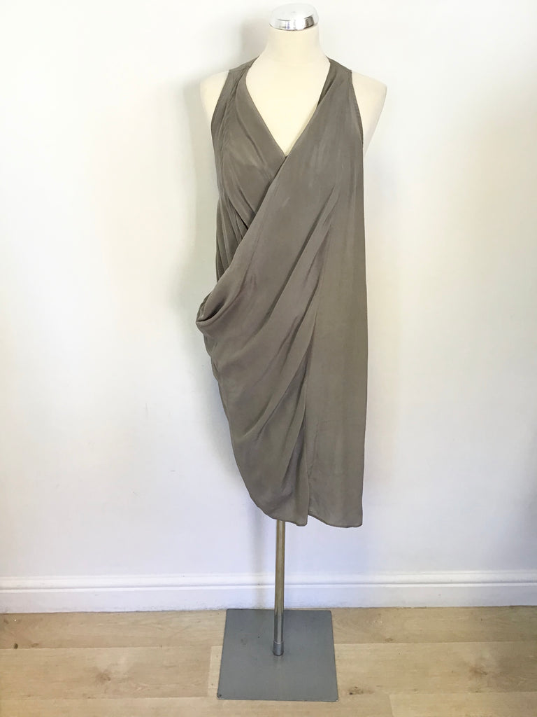 ALL SAINTS MINK GREY IRROCHKA SILK DRAPED DRESS SIZE 10