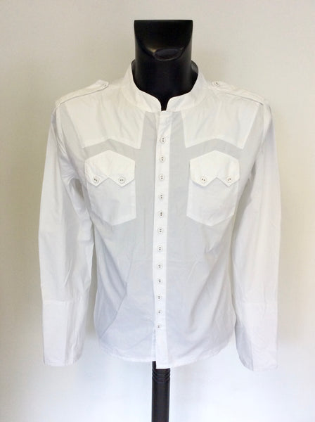 ALL SAINTS WHITE COTTON COLLARLESS LONG SLEEVED SHIRT SIZE L