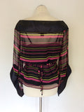 ANNE CARSON BLACK,PINK & GREEN STRIPED TOP SIZE L