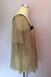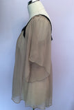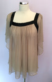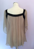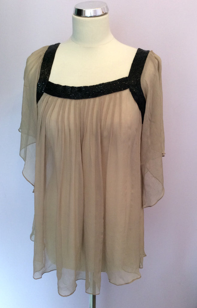 Antik Batik Beige & Black Beaded Trim Silk Top Size L