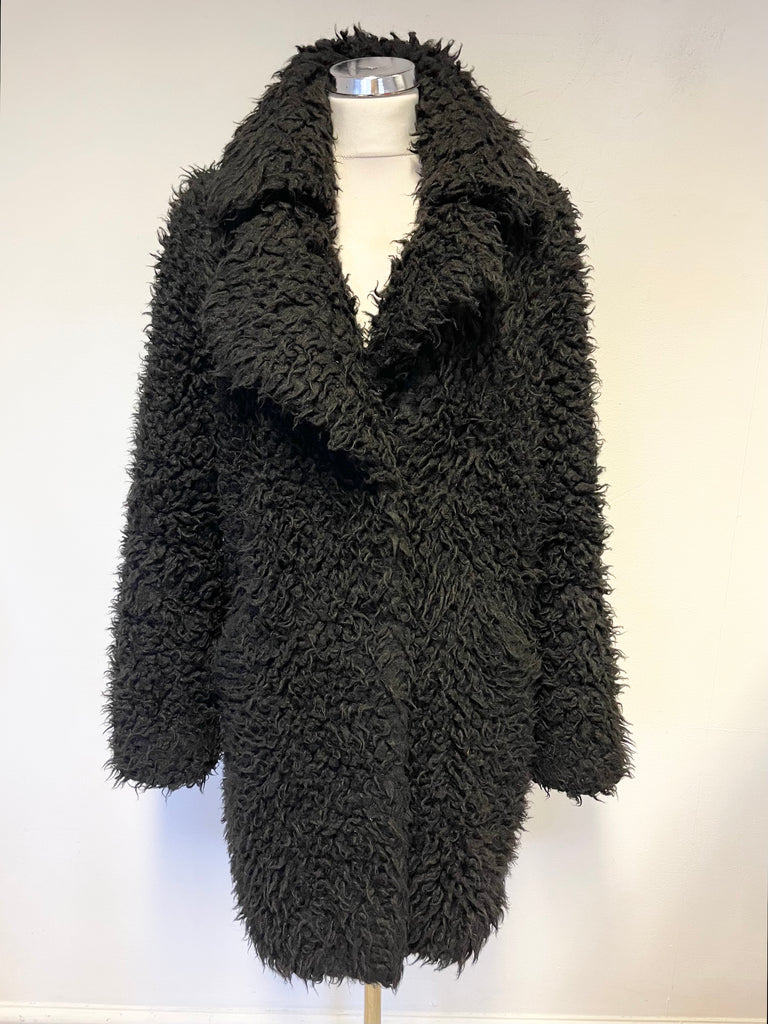 ANTONI & ALISON BLACK SHAGGY PILE COLLARED LONG SLEEVE SHORT COAT