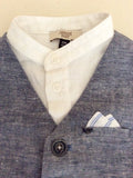 BLUE WAISTCOAT HAS BUTTON FASTEN TO FRONT WITH UPPER HANDKERCHIEF POCKET