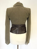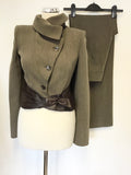 ARMANI COLLEZIONI BROWN WOOL BLEND WITH LEATHER TRIM JACKET & TROUSER SUIT SIZE 40 UK 8