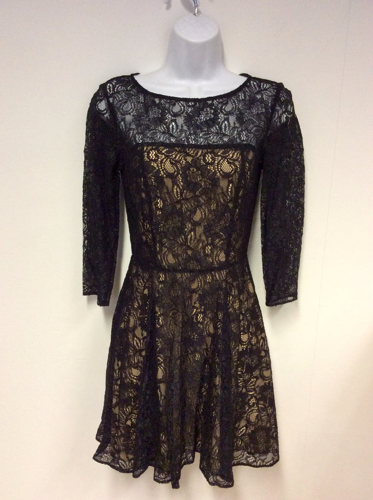 ARMANI EXCHANGE BLACK & NUDE LINED LACE DRESS SIZE 4