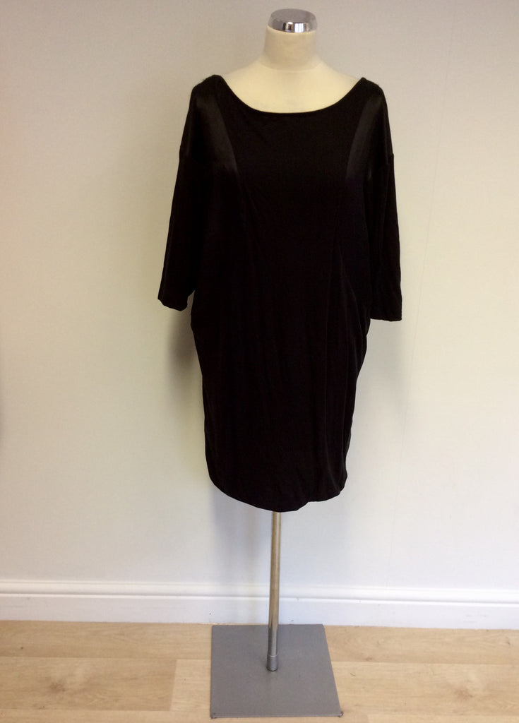 ARMANI EXCHANGE BLACK SATIN TRIM STRETCH JERSEY DRESS SIZE M