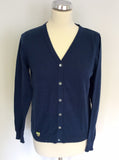 AVOCA ANTHOLOGY BLUE COTTON V NECK CARDIGAN SIZE 2 UK 10/12