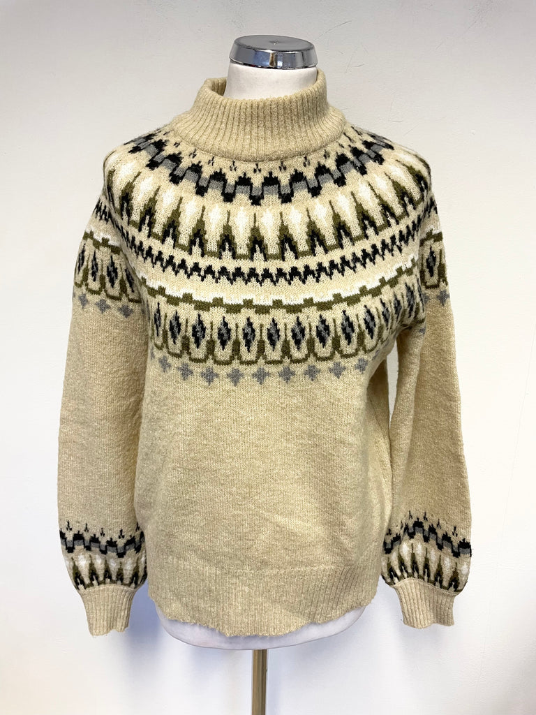 B YOUNG CAMEL FAIR ISLE ROUND NECK LONG SLEEVED JUMPER SIZE S