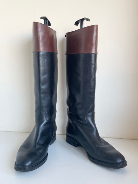 BALLY BLACK & BROWN LEATHER KNEE LENGTH BOOTS