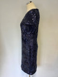 BRAND NEW DAMSEL IN A DRESS NAVY BLUE SEQUINNED & CHENILE PRINT PENCIL DRESS SIZE 12