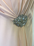 OVER PANEL LAYER TO FRONT HAS GATHERING TO SIDE WITH SILVER BEAD,SEQUINS & DIAMANTÉ TRIM WITH DRAPING