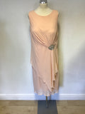 BRAND NEW MASCARA PEACH SLEEVELESS DRESS & MATCHING SEMI SHEER JACKET SIZE 18