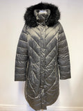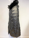 BARBOUR REESDALE CHARCOAL FUR TRIM HOODED QUILTED PADDED LIGHTWEIGHT COAT SIZE 16