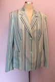 BASLER LIGHT AQUA BLUE,WHITE & DARK BLUE STRIPE COTTON JACKET SIZE 18