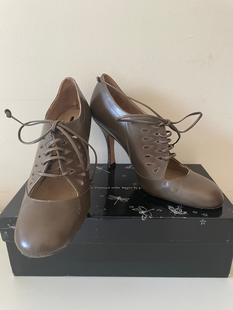 BEATRIX ONG NESSIE BROWN LEATHER LACE UP HEELS SIZE 6/39