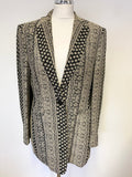 BETTY BARCLAY BLACK & BEIGE PATTERNED LONG LINE JACKET SIZE 14