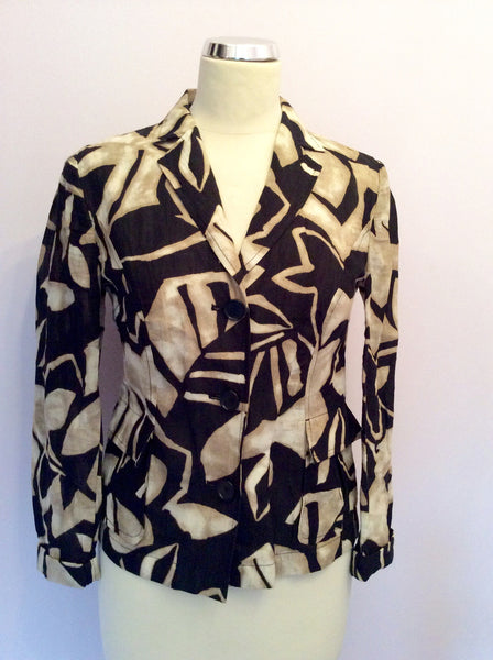 Betty Barclay Collection Black & Light Brown Print Cotton & Linen Jacket Size 8