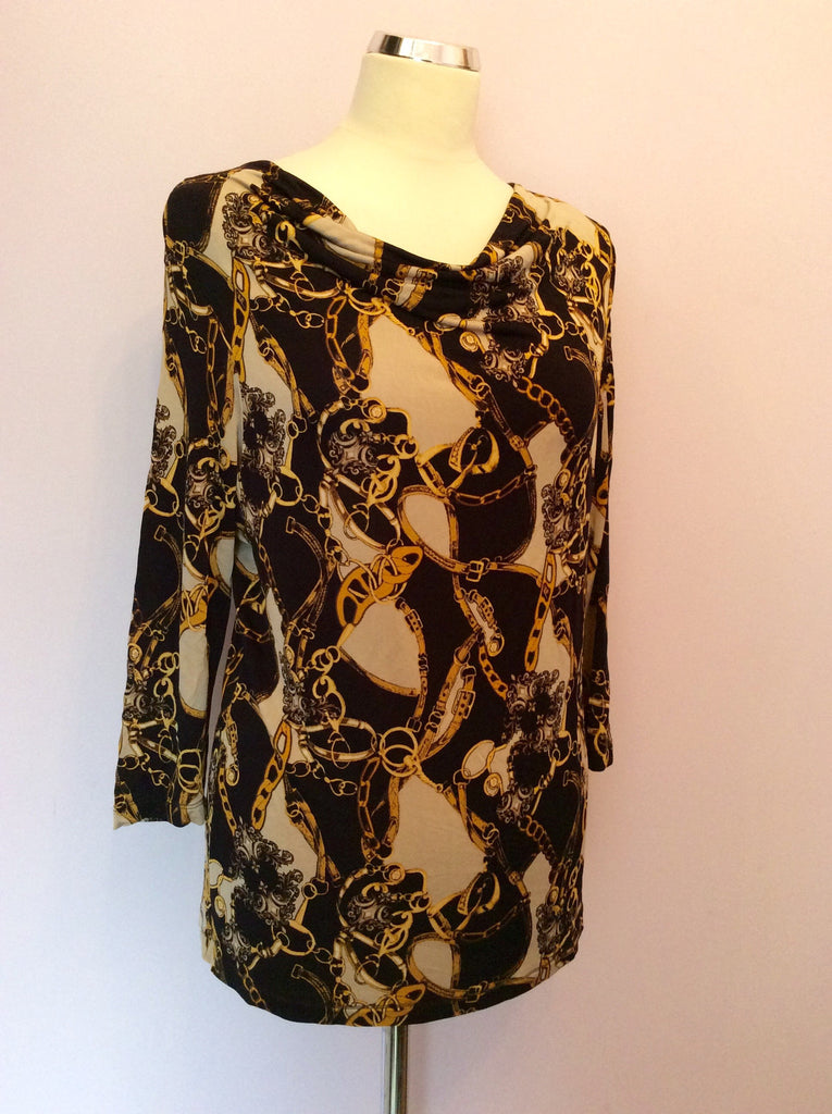 Betty Barclay Collection Navy, Beige & Gold Print Top Size 16