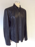 BETTY BARCLAY DARK BLUE SOFT LEATHER ZIP UP JACKET SIZE 18