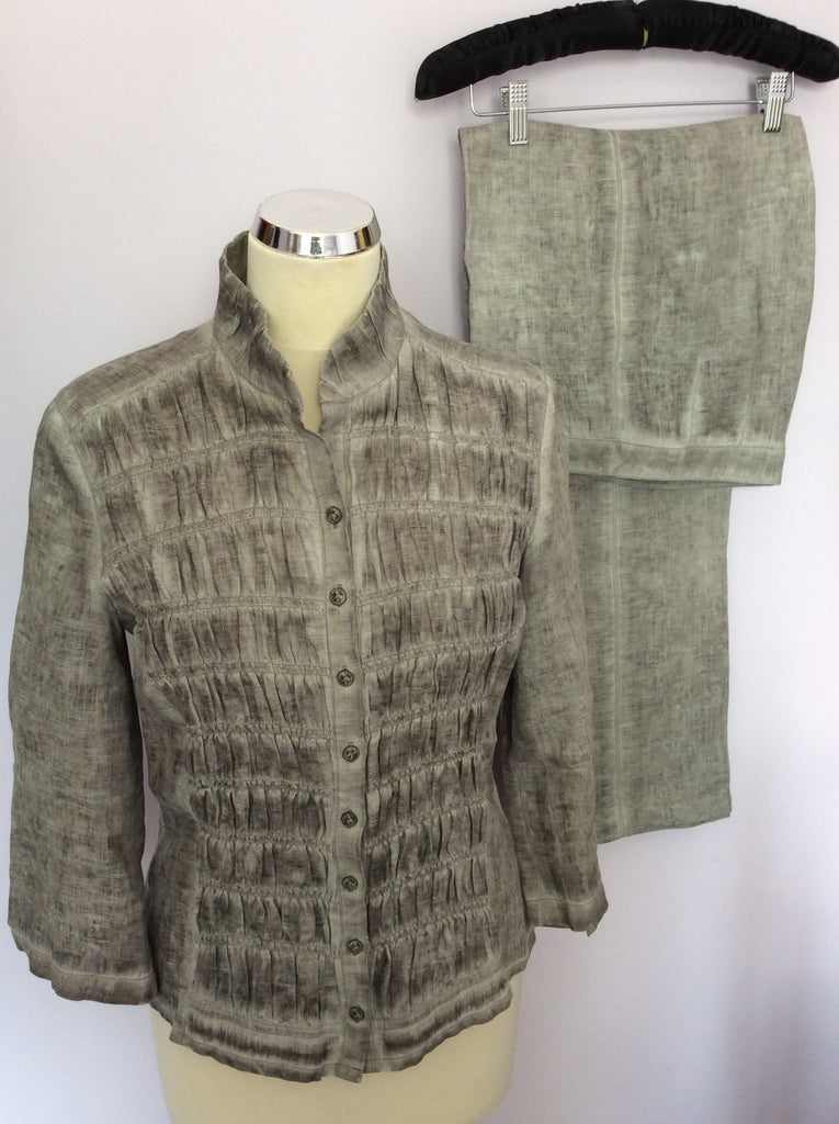 BETTY BARCLAY GREY LINEN JACKET/TOP & TROUSER SUIT SIZE 10