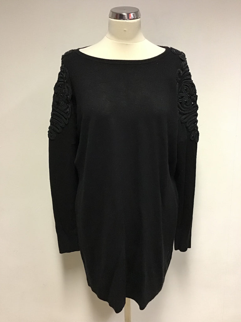 BETTY JACKSON BLACK EMBELISHED SHOULDER LONG JUMPER SIZE 12