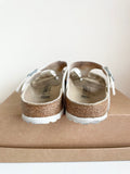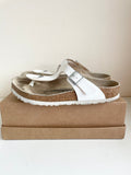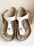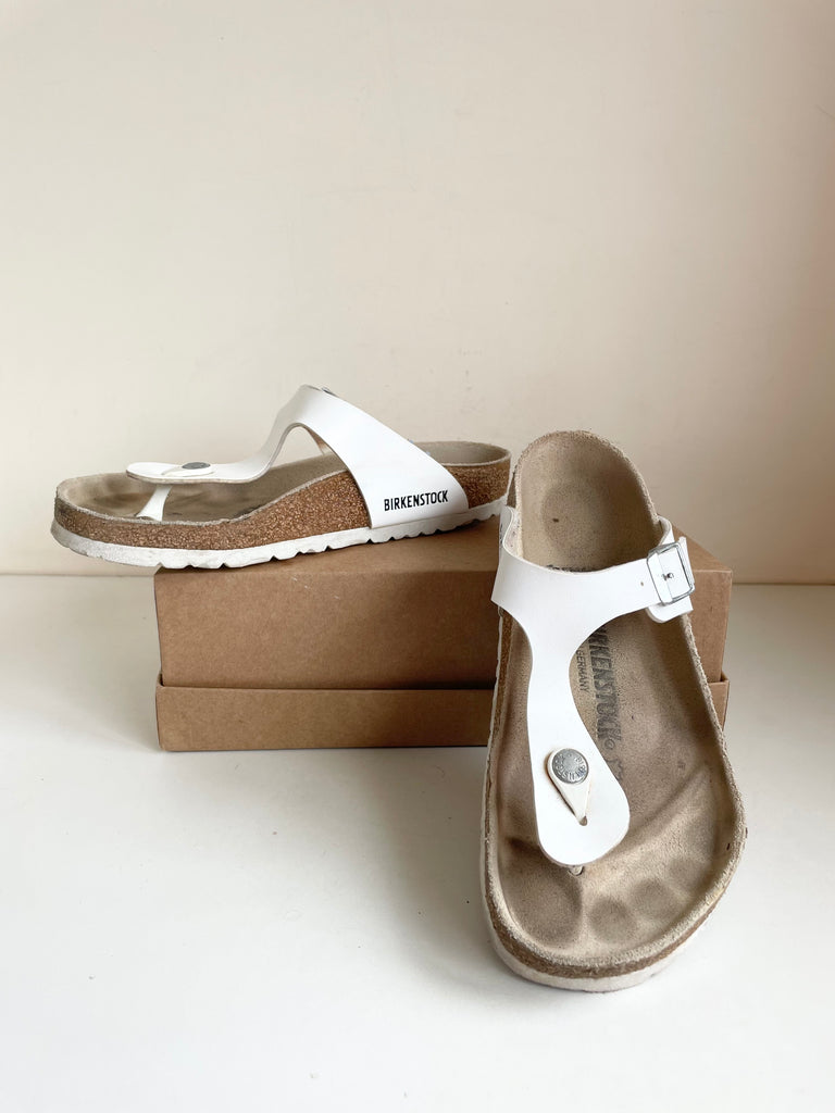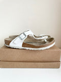 BIRKENSTOCK WHITE LEATHER TOE POST SLIDERS WITH BUCKLES SIZE 5/38
