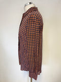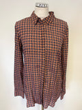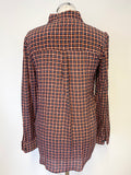 BODEN 100% SILK RUST & NAVY PRINT LONG SLEEVED BLOUSE SIZE 10