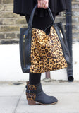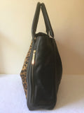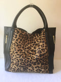 BODEN BLACK LEATHER WITH BROWN LEOPARD PRINT COW HIDE SHOULDER BAG