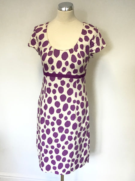 BODEN IVORY & PURPLE PRINT CAP SLEEVE COTTON DRESS SIZE 10