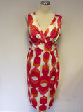 BODEN PINK,WHITE,ORANGE & CREAM PRINT COTTON DRESS SIZE 10L
