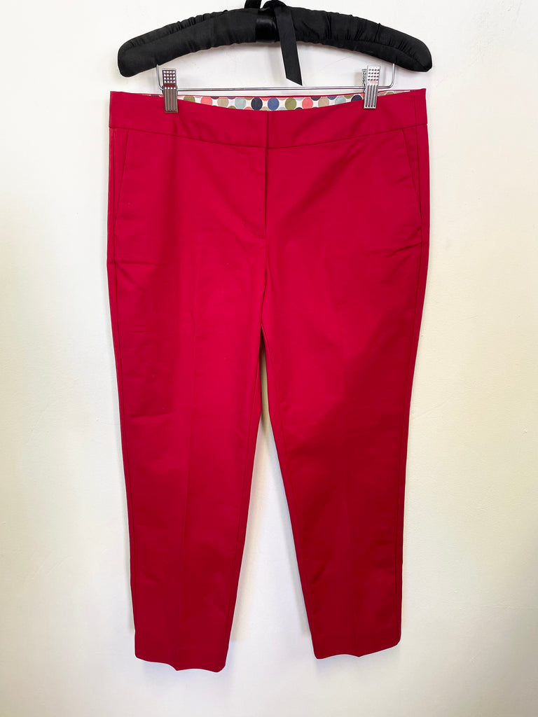 BODEN RED COTTON TAPERED LEG CROPPED TROUSERS SIZE 12R