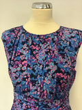 BODEN TURQUOISE & PINK FLORAL PRINT DRESS SIZE 12 PETITE