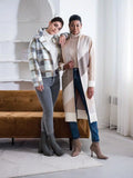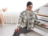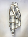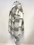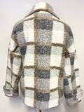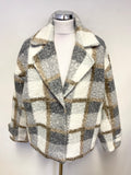 BRAND NEW ALISON SHERI GREY,BROWN & IVORY CHECK BOUCLE KNIT LONG SLEEVE JACKET