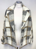 BRAND NEW ALISON SHERI GREY,BROWN & IVORY CHECK BOUCLE KNIT LONG SLEEVE JACKET SIZE L