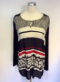 BRAND NEW BARBARA LEBEK BLACK, BEIGE & RED PRINT LONG SLEEVE TOP SIZE 20