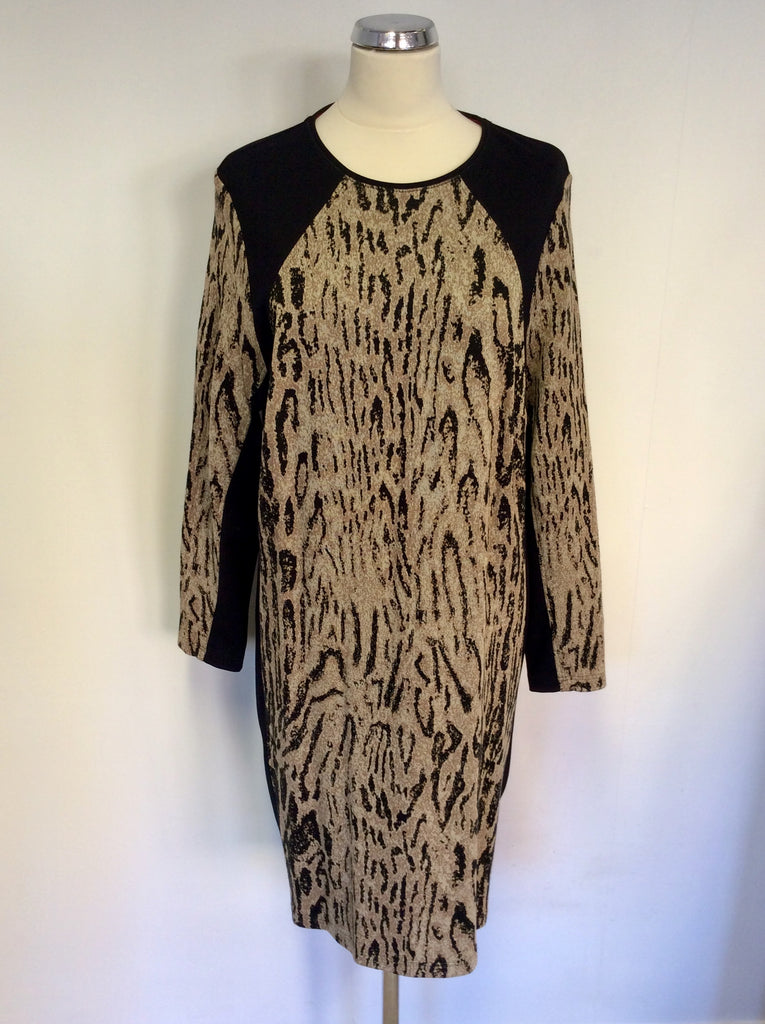 BRAND NEW BARBARA LEBEK BLACK & BROWN PRINT STRETCH DRESS SIZE 18