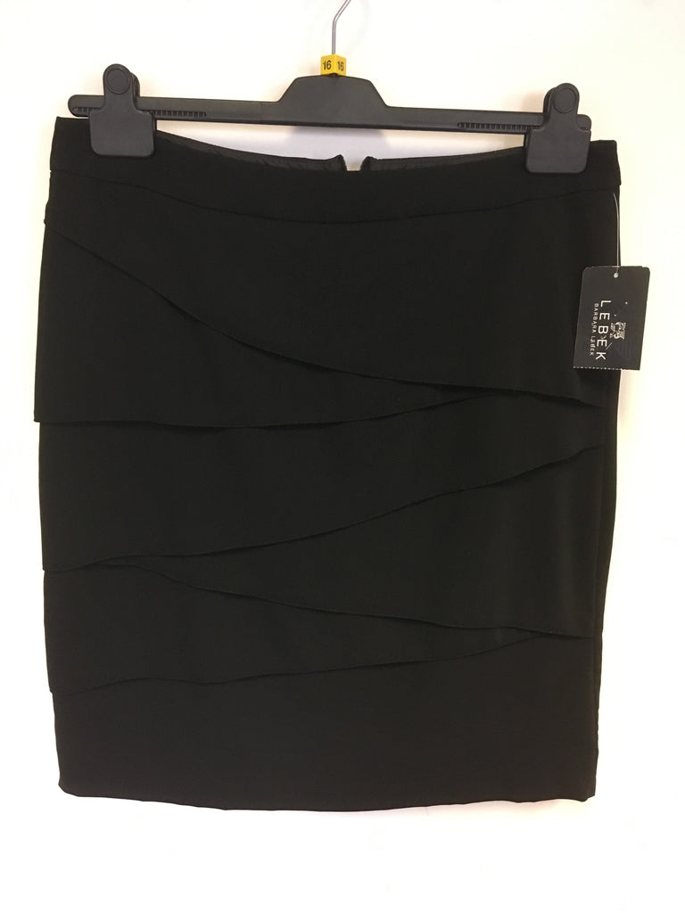 BRAND NEW BARBARA LEBEK BLACK TIERED PANELS STRAIGHT SKIRT SIZE 16