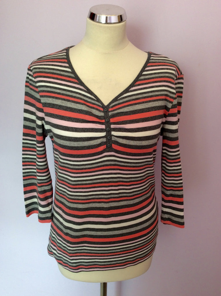 Brand New Betty Barclay Striped 3/4 Sleeve V Neck Top Size 14