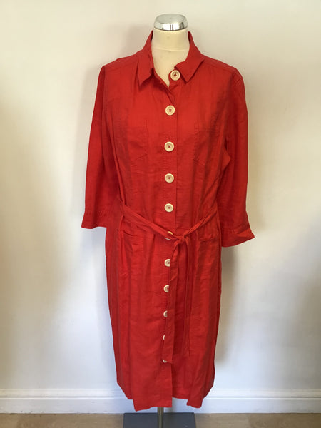 BRAND NEW BODEN RED LINEN TIE BELT SHIRT DRESS SIZE 18L