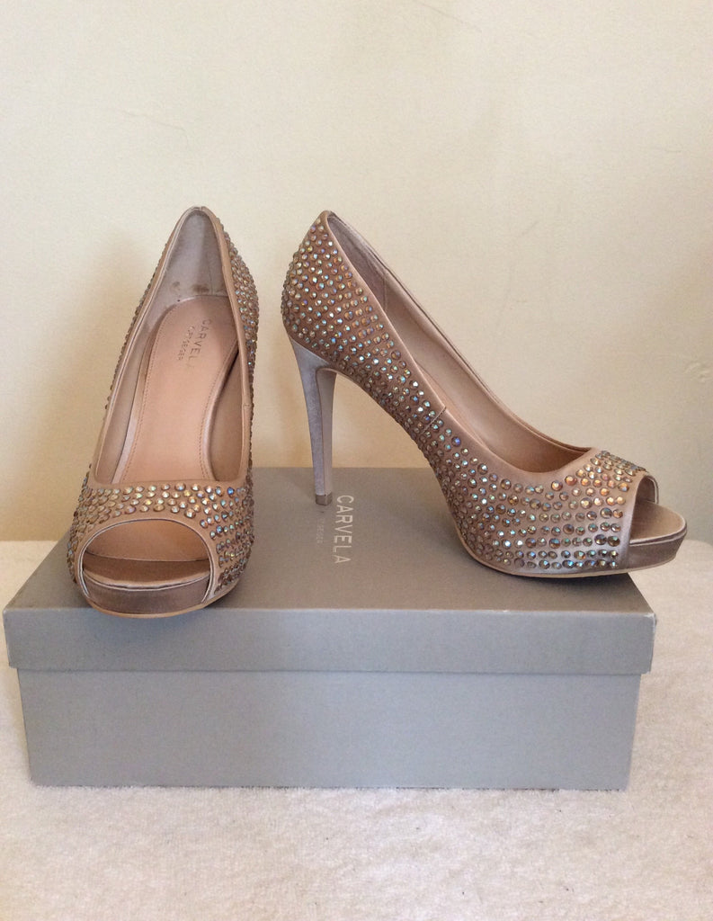 Brand New Carvela Nude Satin Jewel Trim Peeptoe Heels Size 6/39