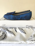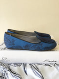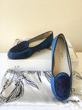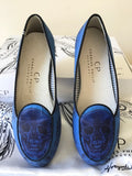 BRAND NEW CHARLES PHILIP BLUE SKULL PRINT SLIP ON SATIN LOAFERS SIZE 3.5/36